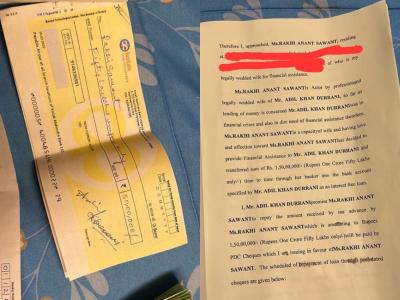 या प्रकरणात राखी सावंतने आपल्या इन्स्टाग्राम अकाउंटवर काही चेकचे फोटो शेअर केले आहेत जे तिच्या नावावर होते. मात्र त्यांच्यावर आदिल खान दुर्रानीने सही केली होती.