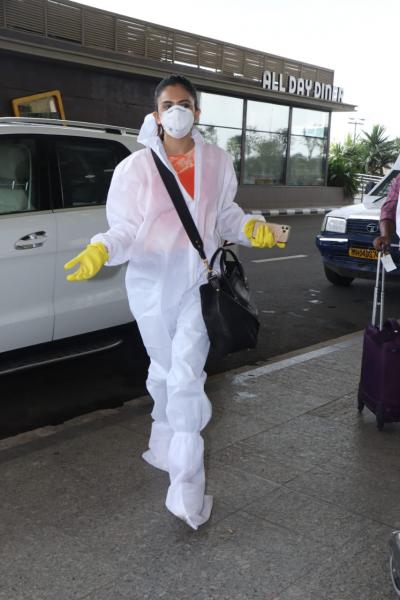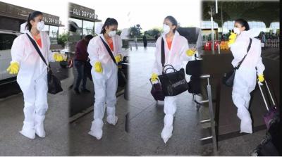 कोरोनाच्या भीतीपोटी अशा अंदाजात एअरपोर्टवर स्पॉट झाली ही अभिनेत्री, तुम्ही तरी तिला ओळखले का?