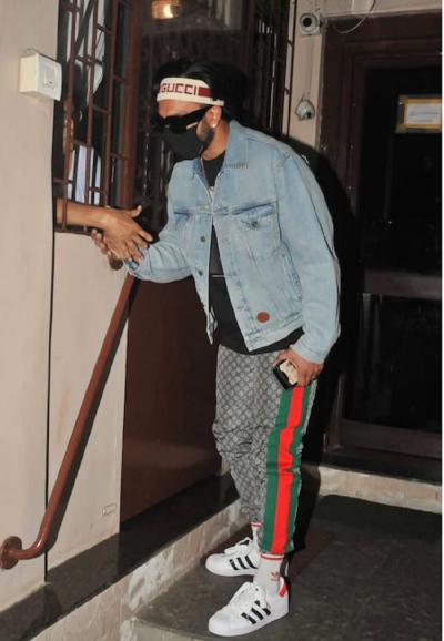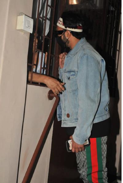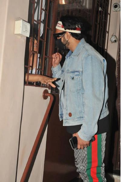 यावेळी रणवीरने ब्लॅक कलरची टी-शर्ट, त्यावर डेनिम जॅकेट कॅरी केला होता. त्याचा हेअरबँड, सनग्लासेज आणि मास्कही खास होता.