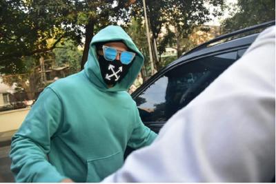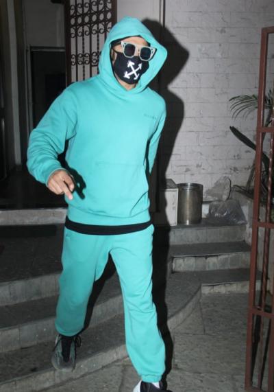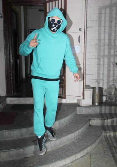 रणवीरने यावेळी एक डिझाईनर मास्क घातला होता. ब्लॅक कलरचा हा डिझाईनर मास्क, सोबत निळ्या रंगाचा गॉगल आणि निळ्याच रंगाचा हुडी ट्रॅकसूट असा त्याचा अवतार होता.