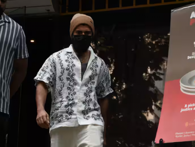 यावेळी विजय देवरकोंडा कूल लूकमध्ये दिसला. पांढऱ्या शर्टसोबत मॅचिंग पॅन्ट त्यानं परिधान केली होती. पण, त्याने मास्कने चेहरा लपवलेला होता.