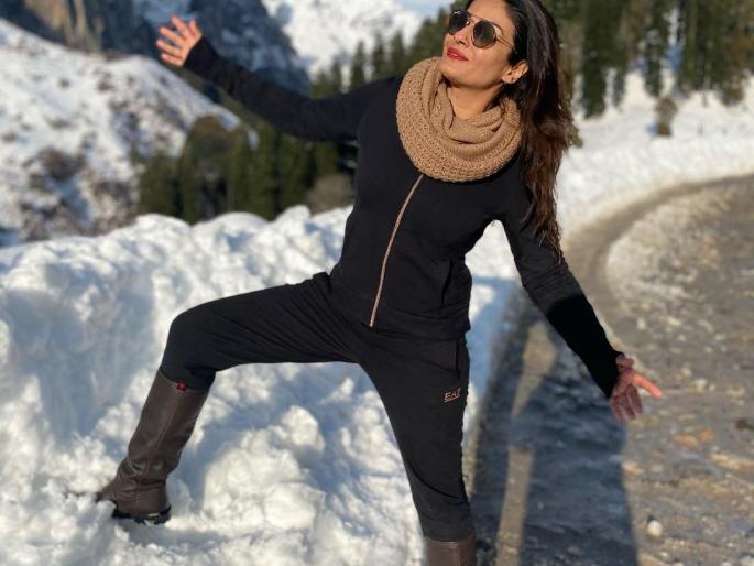 IN PICS : शाहरुख खानसारखी पोज देताना हिमाचलमध्ये दिसली रवीना टंडन, पहा फोटो