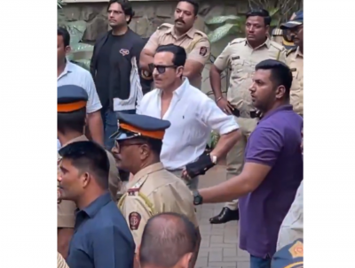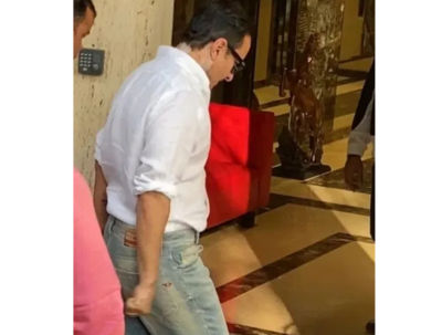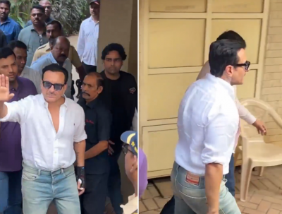 सैफ अली खान घरी पोहोचल्यावर इमारतीच्या परिसरात पापाराझींच्या कॅमेऱ्यात कैद झाला.