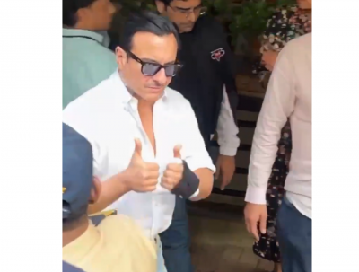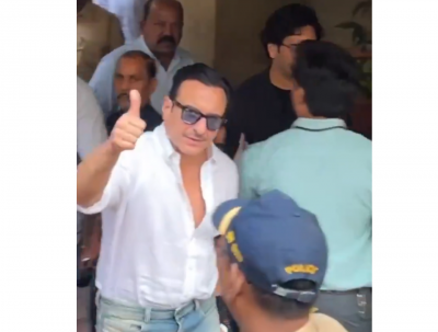 डिस्चार्ज मिळाल्यानंतर सैफ निळी जिन्स आणि पांढऱ्या शर्टमध्ये आला. चेहऱ्यावर स्मित हास्य आणि डोळ्यावर गॉगल अशा स्वॅगमध्ये तो दिसला.