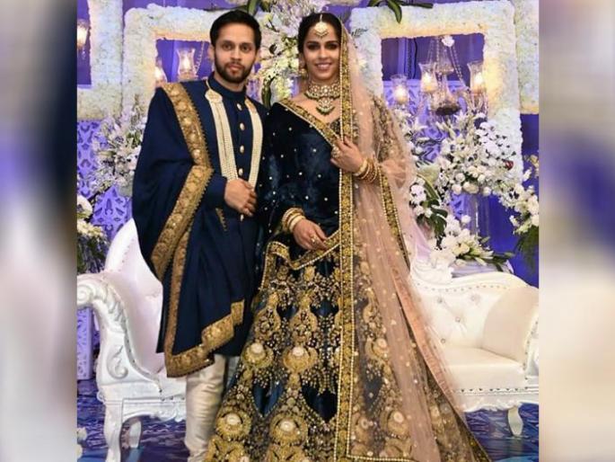 1 / 8भारताची स्टार बॅटमिंटनपटू सायना नेहवाल गत १४ डिसेंबरला बॅडमिंटनपटू पी. कश्यपबरोबर लग्नबेडीत अडकली. अगदी मोजक्या लोकांच्या उपस्थितीत हा विवाह सोहळा पार पडला होता. काल हैदराबादेत या लग्नाचे ग्रॅण्ड रिसेप्शन पार पडले. या रिसेप्शनचे खास फोटो खास आपल्यासाठी....2 / 8 सायना व पी कश्यप दोघेही दहा वर्षांपासून रिलेशनशिपमध्ये होते. पण यावर्षी त्यांनी याबाबतचा खुलासा केला होता.3 / 8सायनाने आपल्या इन्स्टा अकाऊंटवर रिसेप्शनचे काही फोटो शेअर केले आहेत.4 / 8या रिसेप्शनमध्ये सायनाने इंडिगो कलरचा लहंगा घातला होता. बॉलिवूडचे सुप्रसिद्ध फॅशन डिझाईनर सब्यसाची यांनी ही लहंगा डिझाईन केला होता.5 / 8सायनाचा पती पी. कश्यप यानेही इंडिगो कलरची शेरवानी घातली होती. रिसेप्शन पार्टीतील दोघांचाही रॉयल लूक पाहण्यासारखा होता. पी. कश्यपने आपल्या शेरवानीसोबत तुस्सार जॉर्जेटची शाल कॅरी केली होती. या शॉलच्या बॉर्डरवर गोल्डचे वर्क केले होते.6 / 8रिसेप्शनमध्ये कपलने केकही कापला. हा क्षणही कॅमेºयाने टीपला.7 / 8लग्नानंतरचे फोटो शेअर करताना सायनाने, माझ्या आयुष्यातील सर्वेश्रेष्ठ मॅच, असे लिहिले होते. सायना व पी कश्यपच्या या रिसेप्शनला साऊथ फिल्म इंडस्ट्रीतील अनेक सेलिब्रिटींनी हजेरी लावली.8 / 8सायना व पी. कश्यप दोघेही हैदराबादेतील आहे. १० वर्षांपासून रिलेशनशिपमध्ये असलेल्या या खेळाडूंनी याच वर्षी आपले रिलेशनशिप जगजाहिर केले होते.