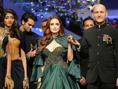 बॉलिवूड अभिनेत्री दीया मिर्झा थिरकली रॅम्प वॉकवर, उपस्थितांच्या नजरा तिच्याकडेच होत्या.