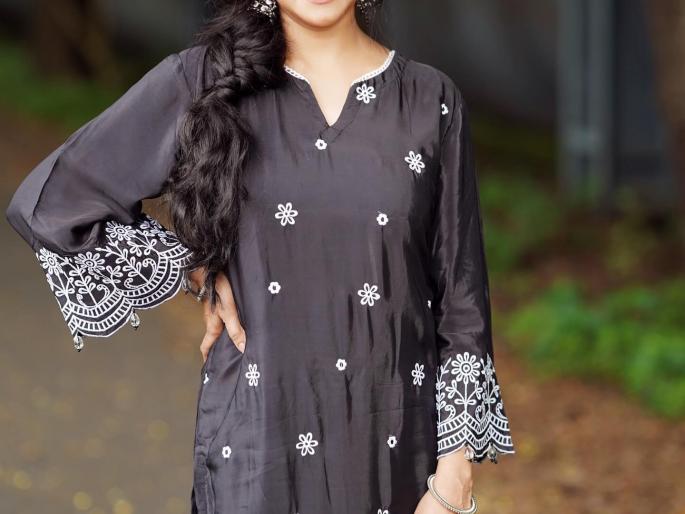 'ठरलं तर मग' मालिकेतील सायली ब्लॅक एथनिक ड्रेसमध्ये दिसली खूप सुंदर, पाहा फोटो