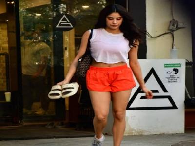 नेहमीप्रमाणेच जान्हवी कपूर जिमच्या बाहेर शॉर्ट कपड्यांमध्ये दिसली. अभिनेत्रीने पांढऱ्या रंगाच्या क्रॉप टॉपसह केशरी रंगाची शॉर्ट्स परिधान केली.