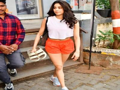 जान्हवी कपूरची किल्लर पोज; जिमच्या बाहेर हातात चप्पल, छोट्या कपड्यांमध्ये दिसली