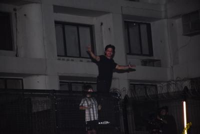 चाहत्यांच्या शुभेच्छांचा स्वीकार करण्यासाठी आणि त्यांचे आभार मानण्यासाठी बॉलिवूडचा बादशाह बाल्कनीत आला आणि त्यांनी चाहत्यांना हात जोडून अभिवादन केलं.