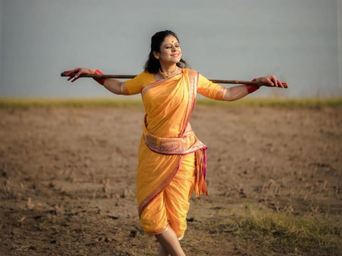 शिवकालीन मर्दानी खेळ खेळताना करारी नजरेने पाहणाऱ्या प्राजक्ताच्या या रूपातून मराठमोळा बाणा अधिकच उठून दिसत आहे.