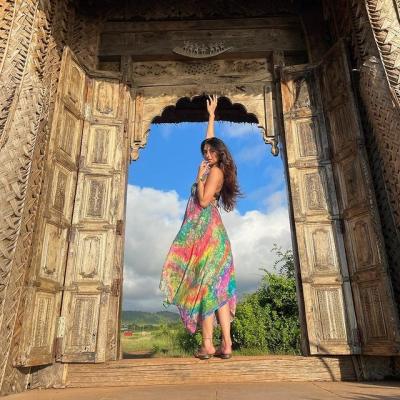 गोव्यातील एका पार्कमध्ये पलक नाचताना दिसते आहे.