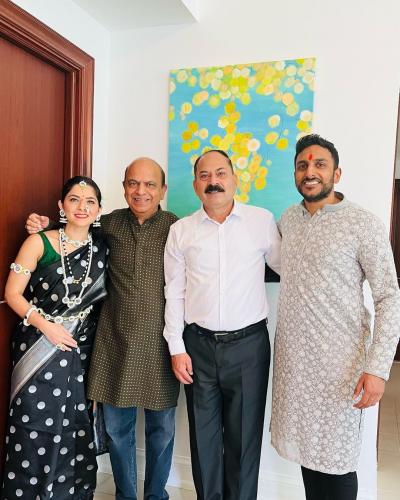 सोनाली कुलकर्णीचा नवरा कुणाल बेनोडेकरने देखील कुर्ता परिधान केला आहे.