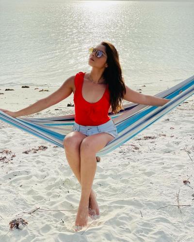 पती कुणालसोबत ती मालदीवमध्ये व्हॅकेशन एन्जॉय करतेय. झोपाळ्यावर निवांत पहुडलेली सोनाली या फोटोत दिसतेय.