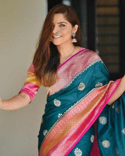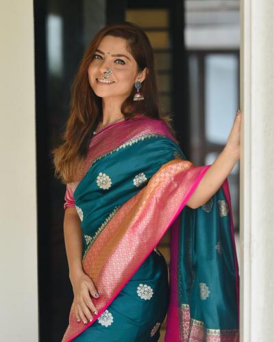 निळ्या बनारसी साडीतील अप्सरेचे फोटो... दिसतेय झक्कास...!