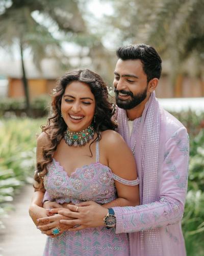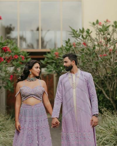 अभिनेत्रीने तिच्या लग्नाला पर्पल कलरचा वेस्टर्न लेहेंगा परिधान केला होता. तर जगत देसाई पांढऱ्या आणि जांभळ्या रंगाच्या शेरवानीमध्ये दिसले.