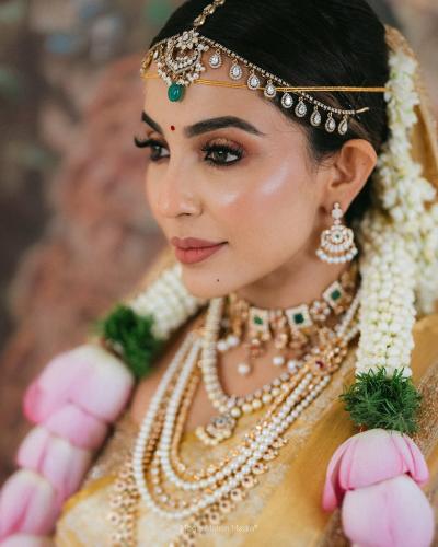पार्वतीने आयुष्यातील या खास दिवसासाठी सोनेरी रंगाची सुंदर कांजीवरम साडी नेसली होती. ती वधूच्या रूपात खूपच सुंदर दिसत होती.