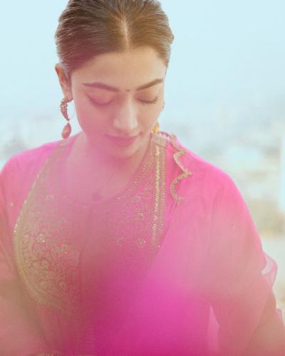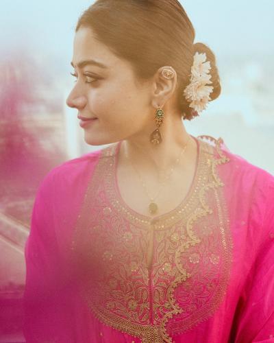 PHOTOS: कपाळावर चंद्रकोर अन् केसात माळला गजरा, रश्मिका मंदानाचं गुलाबी सौंदर्य