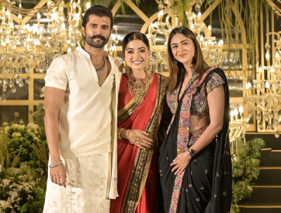 विजय-रश्मिकाच्या या भव्य रिसेप्शनमध्ये दाक्षिणात्य सुपरस्टार नागार्जुन यांनी आपल्या कुटुंबासह उपस्थिती लावून सर्वांचे लक्ष वेधून घेतले.