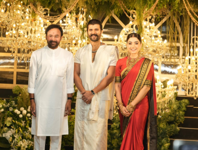 तेलंगणा भाजप नेते जी किशन रेड्डी हे देखील विजय आणि रश्मिका यांना सुखी वैवाहिक जीवनाच्या शुभेच्छा देण्यासाठी पोहोचले.