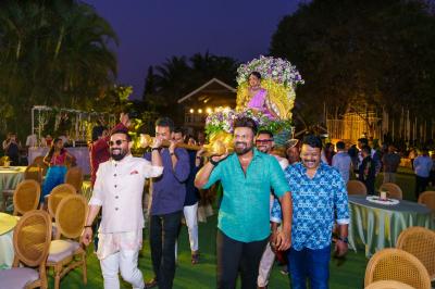 या सोहळ्यासाठी केळीच्या पानांनी आणि फुलांनी खास आकर्षक अशी सजावटही करण्यात आली होती.