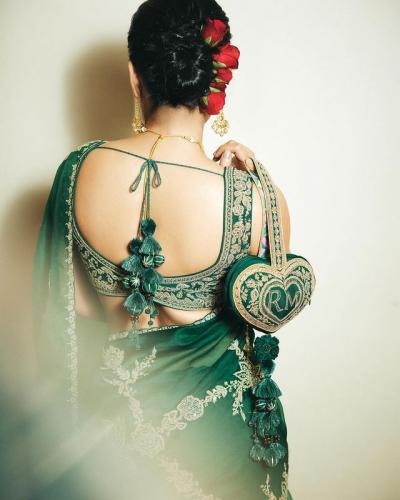 या फोटोंमध्ये तिने हिरव्या रंगाची साडी तसेच त्यावर स्लिव्हलेस ब्लाऊज परिधान केला आहे.