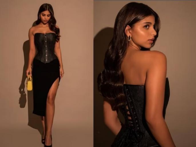 सुहानाने काळ्या रंगाचा पेन्सिल स्कर्ट घातला होता, जो तिच्या सौंदर्यात भर घालत होता. सुहानाने कॉर्डेड कॉर्सेट स्टाइल टॉप घातला होता. सुहानाच्या हातात पिवळ्या रंगाची बॅगही दिसली.