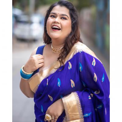 अक्षयाने आजीची साडी नेसून खास लूक केला आहे. निळ्या रंगाच्या साडीत तिचं सौंदर्य खुलून आलं आहे.