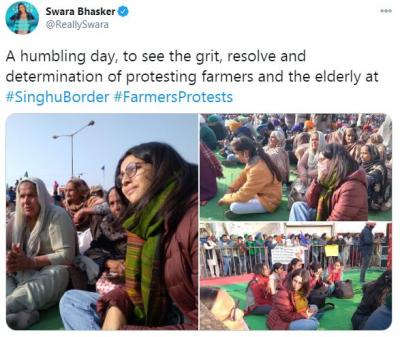 सिंघु बॉर्डरला पोहोचण्याआधी स्वराने अनेकदा ट्विट करत या आंदोलनाला पाठिंबा दर्शवला आहे. शेतकऱ्यांच्या आंदोलनाला विरोध करणाऱ्या प्रत्येक व्यक्तीवर तिने टिकाही केली आहे.
