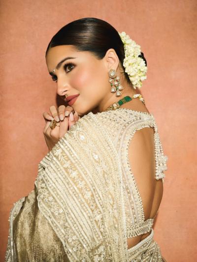 ताराने भरजरी साडी परिधान केली. त्यात ती प्रचंड सुंदर दिसतेय. केसात गजरा माळल्यानं तिचं सौंदर्य आणखी खुललं आहे.