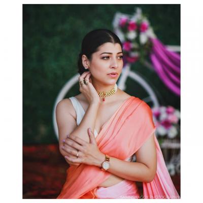 पिच रंगातील साडीतील तिच्या अदांवर सारेच फिदा झाले आहेत.