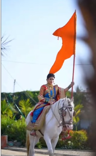 या फोटोशूटमध्ये अश्विनी घोड्यावर बसलेली दिसली आणि तिच्या हातात झेंडा पाहायला मिळाला.