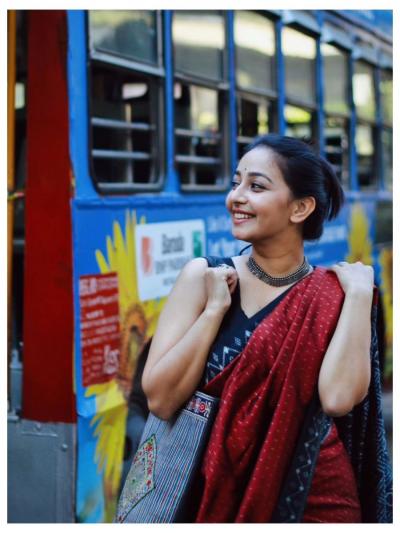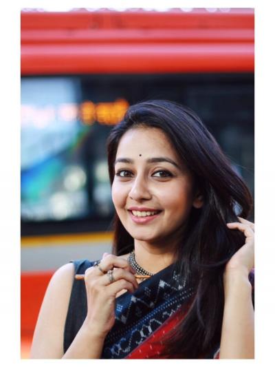 फोटोशूटमध्ये पाहायला मिळतं की रुपल मुंबईतल्या बसमध्ये, ब्रिजखाली, सिग्नलजवळ खास पोज देऊन उभी आहे