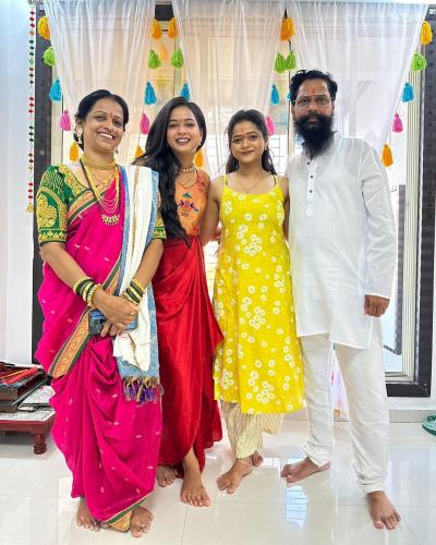 शिवाली परबने नुकतंच नवीन घरात प्रवेश केला. त्यावेळी तिचे आई-बाबा अन् बहिणीची झलक बघायला मिळाली (shivali parab)