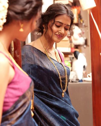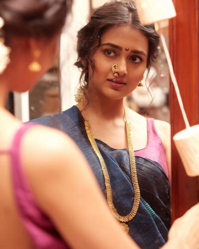 या साडीतल्या फोटोंमध्ये तेजस्वी प्रकाश खूपच सुंदर दिसते आहे. (Photo Instagram)