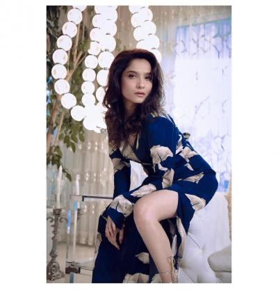 या फोटोंमध्ये अंकिताचा आतापर्यंतचा सर्वात बोल्ड लूक पाहायला मिळत आहे. तिनं निळ्या रंगाचा फ्लोरल प्रिंटेड थाई हाय स्लिट गाऊन घातलेला दिसत आहे.(फोटो: इंस्टाग्राम)