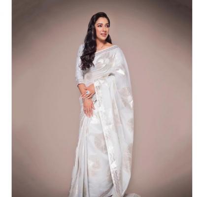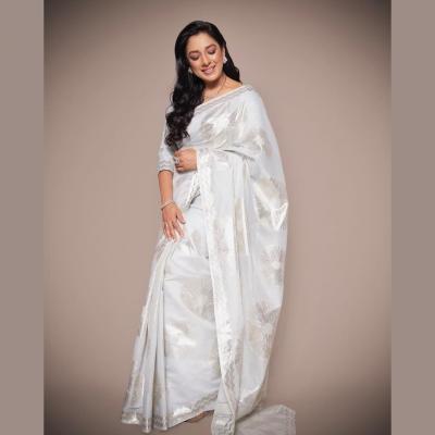 या फोटोंमध्ये रुपाली गांगुली व्हाईट कलरची साडी नेसलेली दिसत आहे, ज्यावर सिल्व्हर रंगाची फुले आहेत. (फोटो: इंस्टाग्राम)
