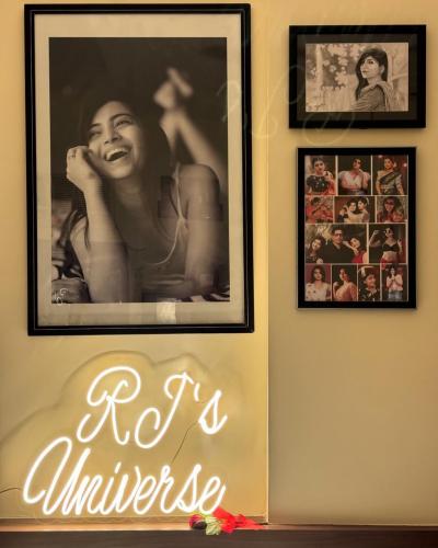 तर दुसऱ्या भींतीवर तिच्या फोटोंच्या फ्रेम आणि कोलाज लावण्यात आलं आहे.