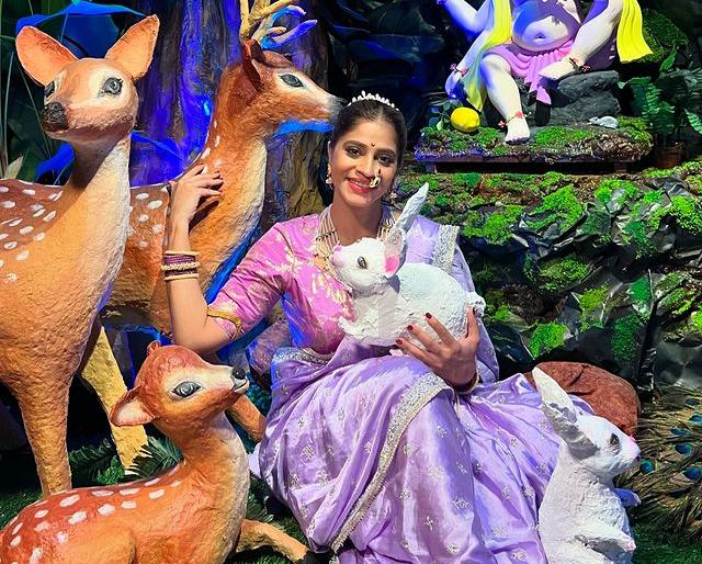 PHOTO: 'हिरवा निसर्ग, हरिण, ससे अन्...' लाडक्या बाप्पासाठी अभिनेत्रीने केला जंगलाचा खास देखावा