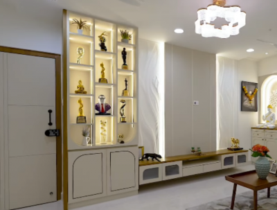 गौरवच्या नव्या घराचा हॉल खूपच प्रशस्त आहे. गौरवने टीव्ही युनिटच्या बाजूला ट्रॉफी ठेवण्यासाठी खास कॉर्नर तयार करून घेतला आहे.