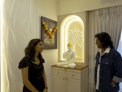 गौरव मोरेच्या घरात ध्यानस्थ मुद्रेत विराजमान असलेली गौतम बुद्धांची अत्यंत सुंदर मूर्ती पाहायला मिळते. या मूर्तीमुळे संपूर्ण घरात एक सकारात्मक ऊर्जा आणि शांतता जाणवते. तसेच, बुद्धांच्या मूर्तीसोबतच भारतीय राज्यघटनेचे शिल्पकार डॉ. बाबासाहेब आंबेडकर यांचा फोटोही तिथे लावलेला दिसतो.