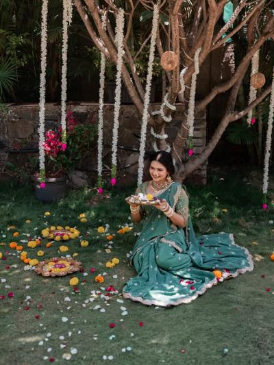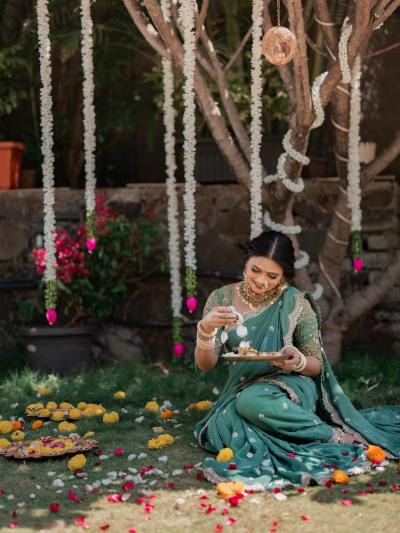हातात आरतीचे ताट धरून तिने दिलेल्या विविध पोजेस सध्या सोशल मीडियावर तुफान व्हायरल होत आहेत.