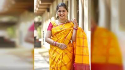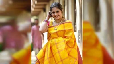 पिवळ्या रंगाची साडी परिधान केली असून कपाळावर टिकली लावल्याचे या फोटोमध्ये पाहायला मिळत आहे.