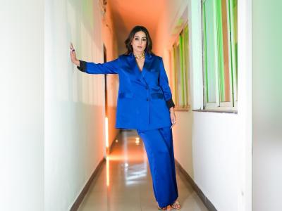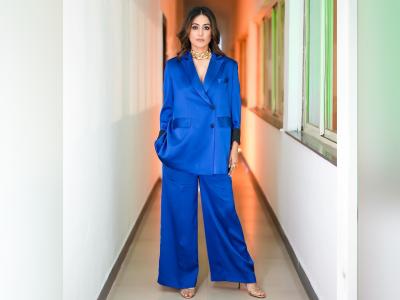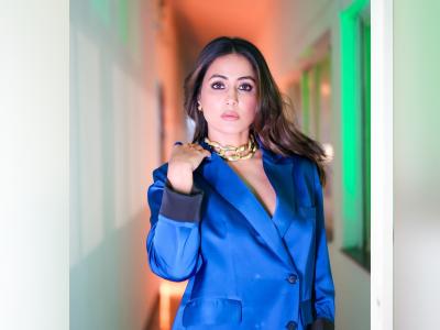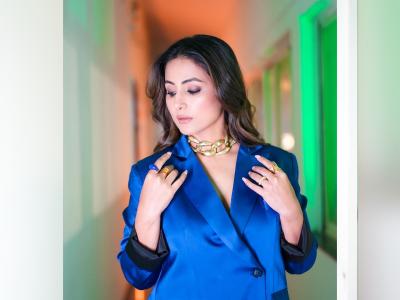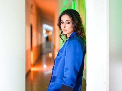 हिना खानचा निळ्या रंगाच्या पँट-ब्लेझरमधील बॉसी लेडी लूक तुफान व्हायरल होत आहे.