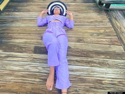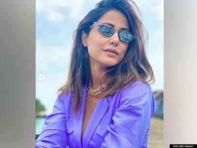 या फोटोत हिना खान लाइट पर्पल ड्रेसमध्ये ग्लॅमरस अंदाजात मस्ती करताना दिसली.