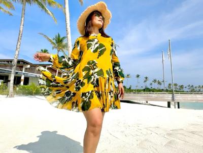 फ्लोरल प्रिंट ड्रेसमध्ये हिना अगदी सुंदर दिसतेय. तिच हे फोटो चाहत्यांना पसंत पडले आहेत.