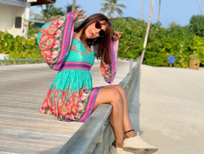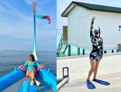 नुकतेच हिना मालदीवमध्ये पोहोचली. याचे काही फोटो तिने सोशल मीडियावर शेअर केले आहेत.