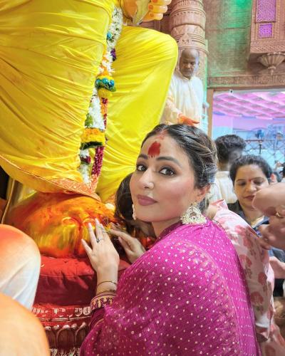 हिना खानने तिच्या अधिकृत इंस्टाग्राम अकाऊंटवर तिचे काही फोटो शेअर केले आहेत, ज्यामध्ये ती लालबागच्या राजाला भेट देताना दिसत आहे. (फोटो: इंस्टाग्राम)