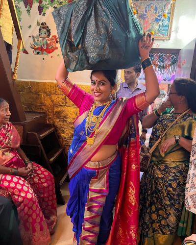 Indian Idol 12 फेम सायली कांबळेनं गौरी पूजनचे फोटो सोशल मीडियावर शेअर केले आहेत आणि लिहिले की, माझा पहिला ववसा..