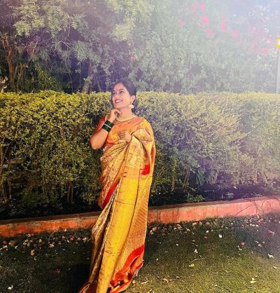 लग्नानंतर सायलीने अनेक फोटो, व्हिडीओ शेअर करत तिच्या वैवाहिक जीवनाचे अपडेट्स चाहत्यांना दिले आहेत. यामध्ये अलिकडेच तिने सिल्कच्या साडीमधील काही फोटो शेअर केले आहेत.